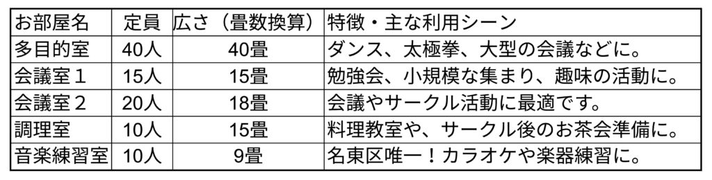 各部屋、目的に合わせて幅広くご利用いただけます。