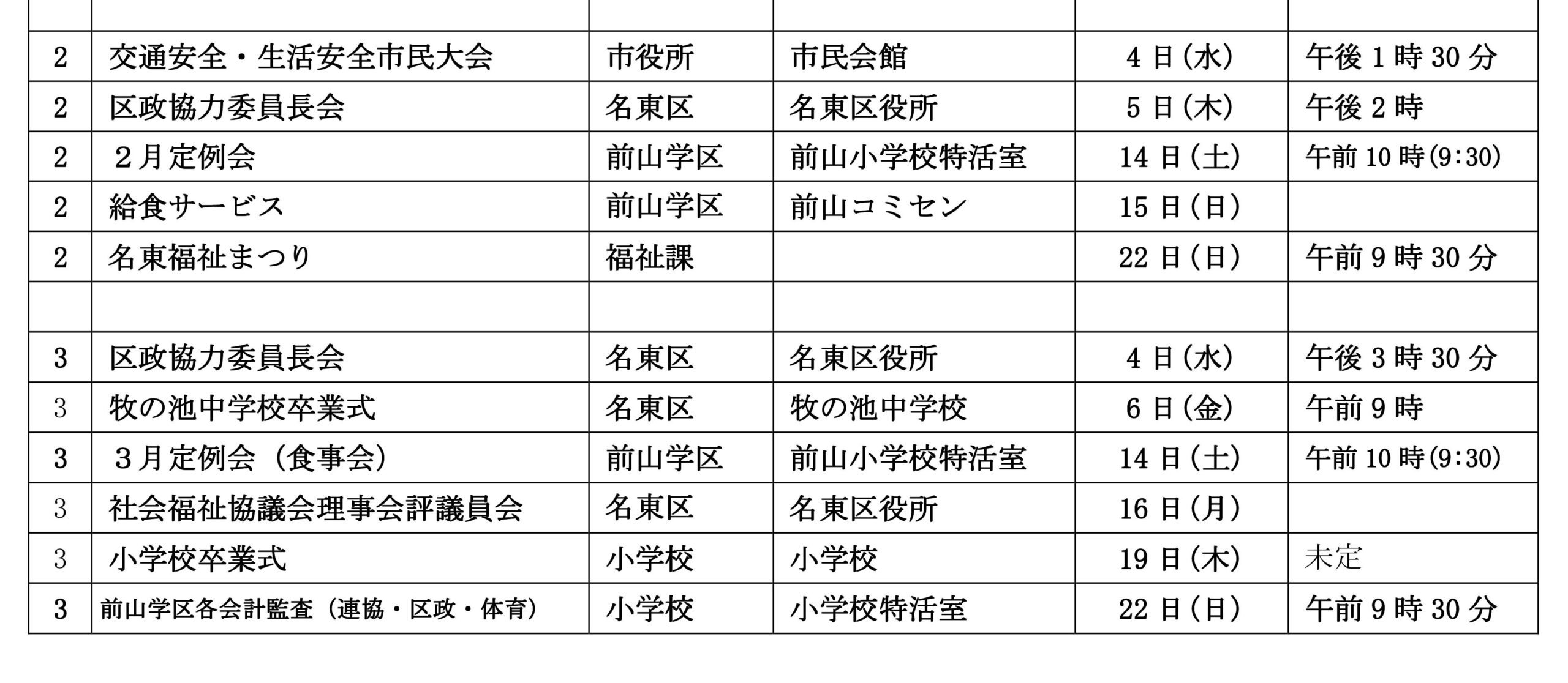 2025/4/9更新 2025年度 前山学区連絡協議会 年間予定(案)